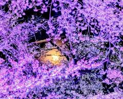 夜桜と月。ピンクムーンです。